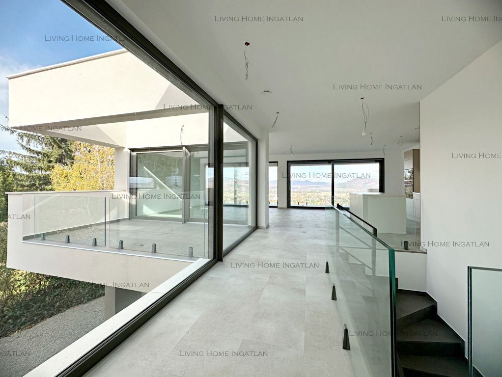 A newly built, premium quality detached family home is for sale on one of Solymár's most beautiful hillsides with panoramic views. The light flooding in through the huge glass surfaces and the stunning views show a different face in every season – morning coffee on the terrace, sunset in the living room in the evening. The eternal panorama of the Buda Hills and the clean, modern architecture create perfect harmony here.The 245 m² home with 5 rooms is unique for its floor-to-ceiling glass surfaces and panoramic terraces. The Vaillant heat pump system, ceiling cooling and heating, heat recovery ventilation, and premium windows and doors with shutters ensure the highest level of comfort. Every detail here is about quality.